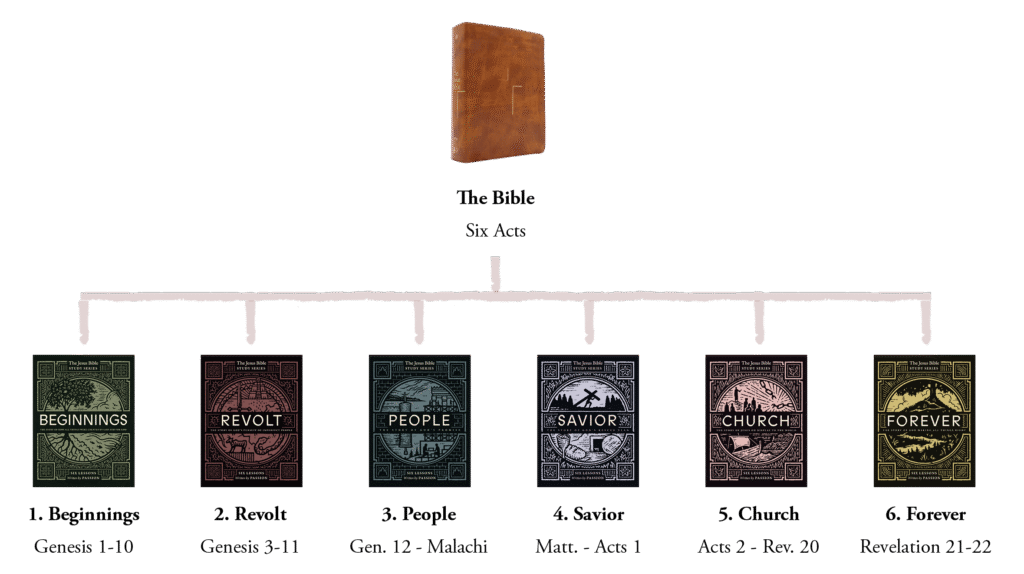 Front and center in the story of the Bible is Jesus. His role is not confined to the Gospels. He is as visible on the first page as the last. The Jesus Bible Study Series follows the six story acts presented in The Jesus Bible. You will follow the thread of Jesus from Genesis to Revelation and discover a new depth to the Bible’s meaning as you see him in every chapter of the story.